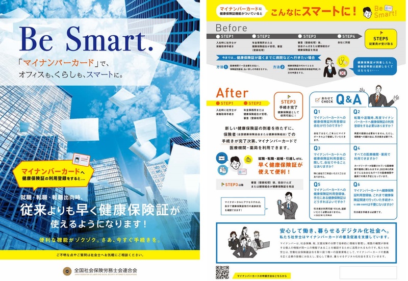 社労士版マイナンバーカード取得促進リーフレットデータのご案内 2022年12月27日 連合会では、マイナンバー取得促進活動の支援ツールとして、 「社労士版マイナンバーカード取得促進リーフレット」データを作製しました。 詳細は、連合会HP会員向けサイトをご覧ください。 戻る